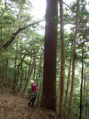 | 前ページから 前黒髪山は本城岳(ほんじょうだけ)とも呼ばれているらしい。展望はないがその少し先が開けている。正面に黒髪山を眺めながら露岩の多い登山道を降ってゆく。登り返して樹林帯に入ると植林帯になって四差路(変形)の大きな道標がある。今回はここから西光密寺(さいこうみつじ)へと進む。寺に着くと観光客がたくさんいてここから山頂を目指す人も多い。長い石段に呼吸が荒れてきつい。 天童岩への道標を見て進む。鎖場を順番に登って行き天童岩に立つ。と思ったが、先客が多く、狭い岩の上部には、昼食(宴会?)をとるグループがいたため断念する。撮影ポイントでもあるためとても残念だ。(他の意味でもとても残念である。) 天童岩の先端は黒髪山頂上標識があるのでそこで二人仲良く記念撮影。しばらく遠望を楽しんで分岐標識まで戻ってのその下で他の人の邪魔にならないように昼食をすませる。 下山はここから一旦北へ進むが、途中から戻るように山腹を歩く。ちょうど天童岩の直下を通過することになる。 西光密寺との分岐に戻るとそこから有田ダムと書かれた方へと進む。 面白い形をしたシダの中をひたすら降る。道は沢沿いになって石がゴロゴロとしてくる。 黒髪山へと書かれたりっぱな道標があるがそこが登山口だ。舗装された道をテクテクと歩きキャンプ場を過ぎるとダム湖沿いの車道に出る。 きれいなダム湖を見ながらなので車道歩きも苦にならない。 振り返ると黒髪山が望める。3つの古い橋を歩くが何と昭和35年竣工と言うからとんでもない。もちろん老朽化しているため重量制限がある。 さてこの後、約束通深川製磁本店に寄って思う存分高価な陶磁器を眺めて(笑)手ごろな器を購入して帰路に着くことに。今日も山に自然に感謝!! ■駐車場-(20分)-岩尾根-(70分)-英山-(25分)-前黒髪山-(30分)-西光密寺分岐四差路-(5分)-西光密寺-(20分)-黒髪山-(15分)-西光密寺分岐四差路-(30分)-登山口-(35分)-駐車場※休憩時間は含まず。全行程で5時間でした。距離8.21km 標高差433m |