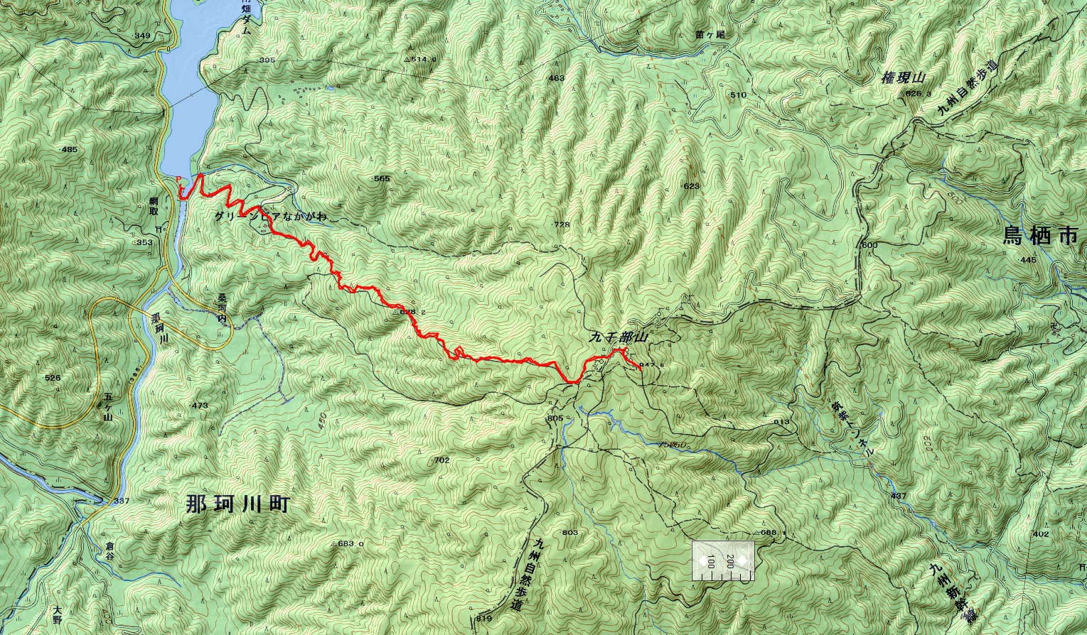九千部山(GPSによる歩行軌跡) 縮尺 約1/25000