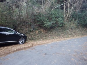 | この先を左折 | 影ノ木集落手前の路肩に駐車させていただく(09:10) | 涙岩と説明板がある |