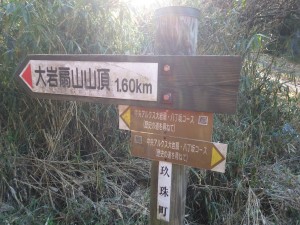| 山頂まで1.6km | 手入れされた田畑を見ながら | 左手を見ると岩壁が |