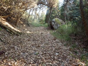 | 石畳は続く | 石畳は枯葉に埋もれている | 笹が蔓延っている |