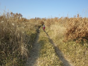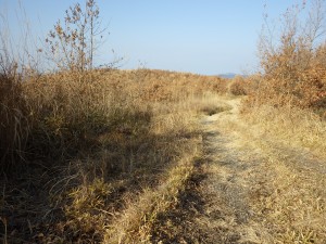 | 舗装された十字路は左のゲートを進む(9:43) | 草原は気持ちよい | 平坦な道を進む |