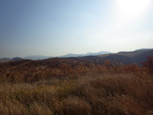 2015年1月11日(日) 天気晴れ ■出発時間:午前6時30分(自宅) ■メンバー:家内と私 ずいぶん前からその山容が気になっていつかは歩こうと思っていたがようやく歩くことになった。 色々な書籍やネットで調べると隣の小岩扇山、そして宝山へと縦走できそうである。 しかし、小岩扇山は自衛隊の演習地であるため事前に確認が必要とのことで電話を入れてみた。 果たしてのその回答は「演習がなかろうと立ち入り禁止です」とのこと。いずれにしろ演習が実施されるとのことで諦めることにした。 この山の読みが少々気になる。役所に電話した時に「おおがんせん、こがんせん」と電話に出た人は言ったが、自衛隊に電話した時は「しょうがんせん」と言われた。 そうなると「おおがんせん」は「だいがんせん」と読むのが当たり前である。 大岩扇山はメサ台地で近くの万年山の小型版のような山である。 山容が面白く登頂意欲を掻き立てるが、実際登ると山頂は広い草原で登る前に見た絶壁はどこにも姿が見えない。そういう意味ではこの山も「見て楽しむ山」なのかもしれない。 今回のルートで見どころは参勤交代で使われた石畳を歩けることだ。昔の人はこの石をどんな格好をしてどんな思いで歩いたのか想像してみるとタイムスリップできる。 石畳は、八丁越に近づくと落ち葉に埋もれてしまい見えなくなるが、今でもしっかりと残っていた。 八丁越は舗装道の十字路になっていて山頂はゲートのある北側へと進む。そこからは草原となり緩やかな坂はすぐに平坦になり西に進路をとって山頂へと導かれる。 山頂は広い草原の中なので展望が特別良いわけではないが、360度見渡せる。 本日は、他に登山者もなく自衛隊の演習の音も聞こえない静かな山歩きである。 山頂でしばらく展望を楽しんで下山は往路を戻る。 次は宝山を目指す。(次ページへ) ■コースタイム 影ノ木集落手前に駐車-(18分)-八丁坂説明板-(15分)-八丁越-(15分)-山頂-(30分)-駐車した場所 ※休憩時間は含まれていません。全行程で約1.5時間でした。 |