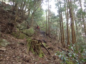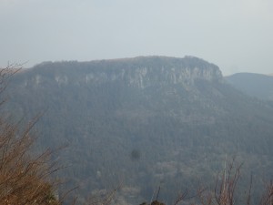 2015年1月11日(日) 天気曇り ■出発時間:午前6時30分(自宅) ■メンバー:家内と私 今日の一座目は大岩扇山を歩き、二座目に宝山を歩いた。 それでも未だ時間があるので大岩扇山の大岩壁を望めると言う角埋山に立ち寄ることにした。 移動中、せっかくなので旧豊後森の駅にも立ち寄ることに 現在のJR豊後森駅に隣接して昔の機関庫と転車台が残っている。扇形の建物は本当に絵になる。よく見るとずいぶんと傷んでいてガラス窓はわれコンクリートも崩壊している部分がある。 遺産の見学をしたら玖珠の 角埋山(つのむれやま)に向かう。 角埋山はほとんど山頂まで車で行けるので登山を目的としたものではないが、大岩扇山の岩壁を一望できるスポットとして登山者にも人気があるようだ。 頂上には難攻不落の角牟礼城の城跡がある。その城跡を散策できるように整備されていてとても歩きやすくなっている。 現在、駐車場付近は工事中で今後観光目的とした人達が増えるのではないだろうか この駐車場からも大岩扇山などが見渡せるが、展望所に立つともっと迫って見える。 本日、歩いた宝山も小岩扇山も見渡せる。 ただ、残念なのは朝、澄み切っていた空が午後から霞んで(霧ではないようだが)しまい、せっかくの眺望がすっきりしないものになってしまった。 宝山を下山中に雨がポツリと落ちていたが何とかここまで持ちこたえてくれた。 今日も自然に山に感謝である。 ■コースタイム 一周約45分程度 |