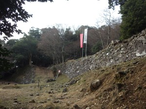 | 城址 | 穴太積石垣(あのうづみいしがき)とある | 井戸曲輪跡とある |