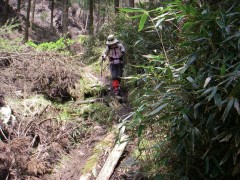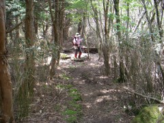 | 下山は往路を戻る | 木は滑りやすいので注意 | もうすぐ林道 |