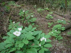 | <コースタイム> ハチケン谷ゲート-(60分)-登山道入り口-(15分)-縦走路出合い-(40分)-京丈山山頂-(30分)-縦走路出合い-(15分)-登山道入り口-(50分)-ハチケン谷ゲート ※休憩時間は含んでいません。全行程で約4時間でした。 <期待してなかったが・・・> ヤマシャクヤクの花はあまり期待していなかったのですが、林道の周りをよく見てゆくと群落がありました。さらに山頂手前にも登山道沿いにたくさんのヤマシャクヤクが咲いていてびっくりです。また、カタクリの花もいくつか見れて花を満喫できました。歩きのほうは、少し物足りなかったのですが、その分早く下山でき、渋滞にも巻き込まれず早く帰宅できてラッキーでした。夕刊に朝の事故のことが載っていました。 |