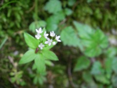 | 下山時に気づいたヤマシャクヤクの群落 | カルスト地形 | クルマバソウに似ているが・・・・・ |