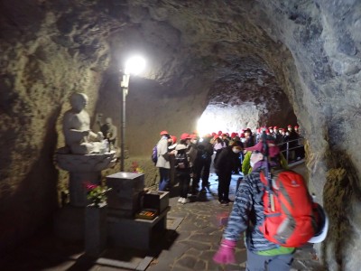 きつい坂道を登り詰め千体地蔵、五百羅漢、本堂と進む。メンバーの中でうっかりスマホを本堂に向けた途端、住職らしき方に注意を受ける。リュックやストックもどこでも置かないように注意を受ける。そんなこんなで良い体験をして駐車場に無事戻る。