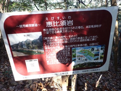 年間計画では、野峠から犬ケ岳一の岳をピストンする予定であったが、諸事情で今回はMさんの企画で本耶馬渓は競秀峰を歩くことにした。競秀峰は、岩峰と奇岩群が約1km続いていて裾野は観光地としても有名な「青の洞門」が在る。(中津耶馬溪観光協会のHPでは「穿たれる」と表現している)
