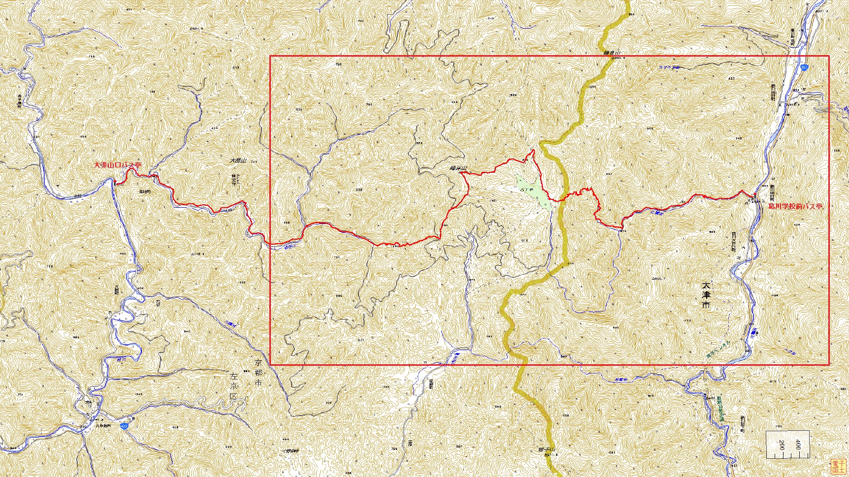 峰床山登山コース(GPSによる歩行軌跡) ※図をクリックすると枠内の拡大図が見れます