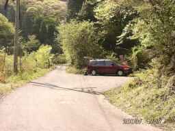 途中、工房の標識があるのでここを左折(写真)し林道へと進む、集落を抜け舗装 された林道をひたすら登ると四差路(写真)となる。