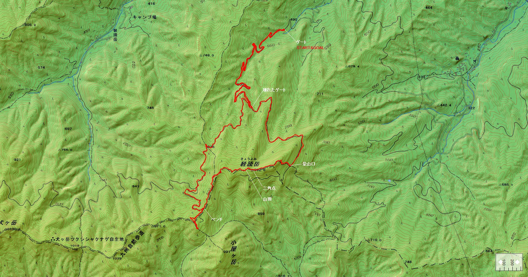 経読岳登山コース(GPSによる歩行軌跡)