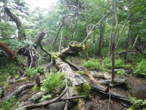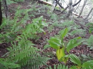 | 柵が山頂まで設けられている | シダとバイケソウが多い | 倒木が多い |