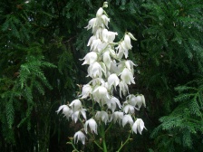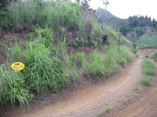 | 道端に咲いていたユッカラン | ここを右折すると林道 | |
