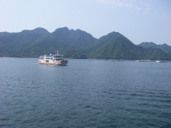| ▲連絡船から見た宮島(中央が弥山) | ||