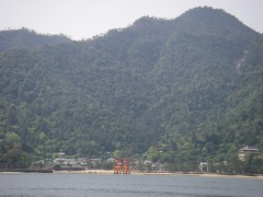 | 今日のメンバー | 連絡船から弥山を見る | 大鳥居が見えてきた |