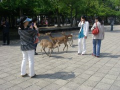 | 鹿が出迎えてくれる | 店が並ぶ | きれいな砂浜だ |