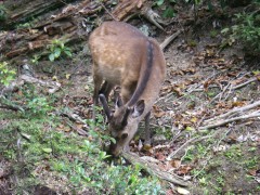 | 巨岩が目立つ | まわりは原始林だそうだ | 鹿は逃げない |