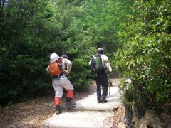 | トイレ休憩(登山口) | 左はロープウエイ、右に行く | 階段が多い |