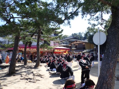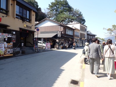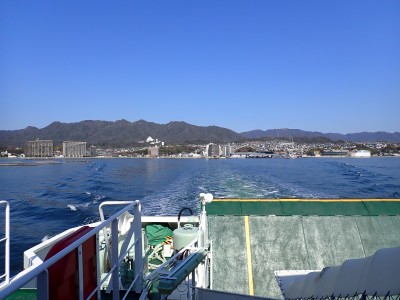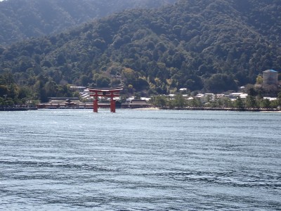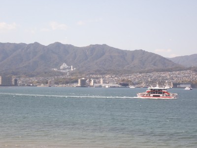 | フェリー乗り場 | 満員で次の船を待つ | 宮島が近づいてくる | |