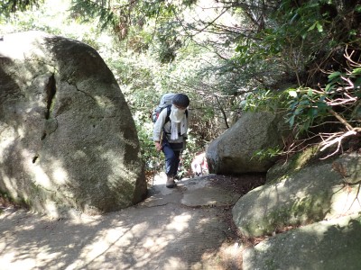 | 登山口(10:44) | 巨石がゴロゴロしている | 緩やかな勾配の階段 | |
