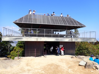 | 山頂に出た(12:24) | 三角点と思われる標石 | 展望台は新しくなっていた | |