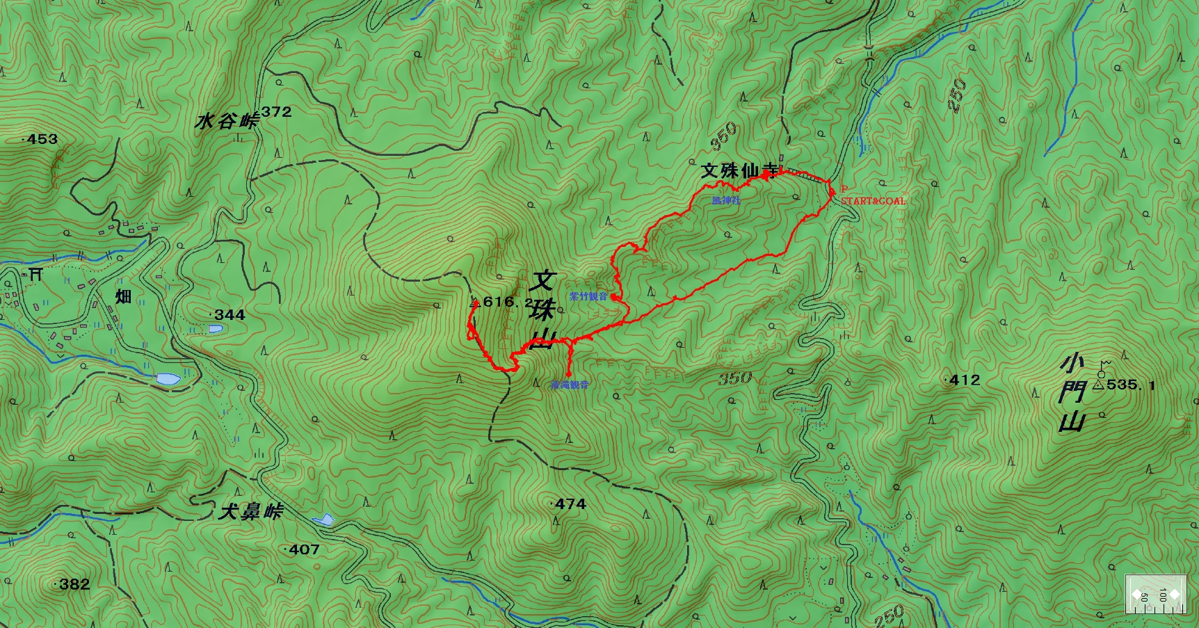 文殊山登山コース(GPSによる歩行軌跡) 縮尺:約1万2千