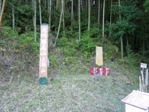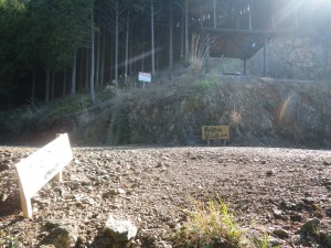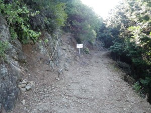 | 入角地蔵(下の地蔵)いりすみじぞう | 植林の尾根道となる | 林道に出ると東屋がある |