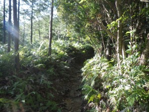 | シダが茂る登山道は東側が見通せる | これはミツバツツジかな? | 尾根道を歩く |