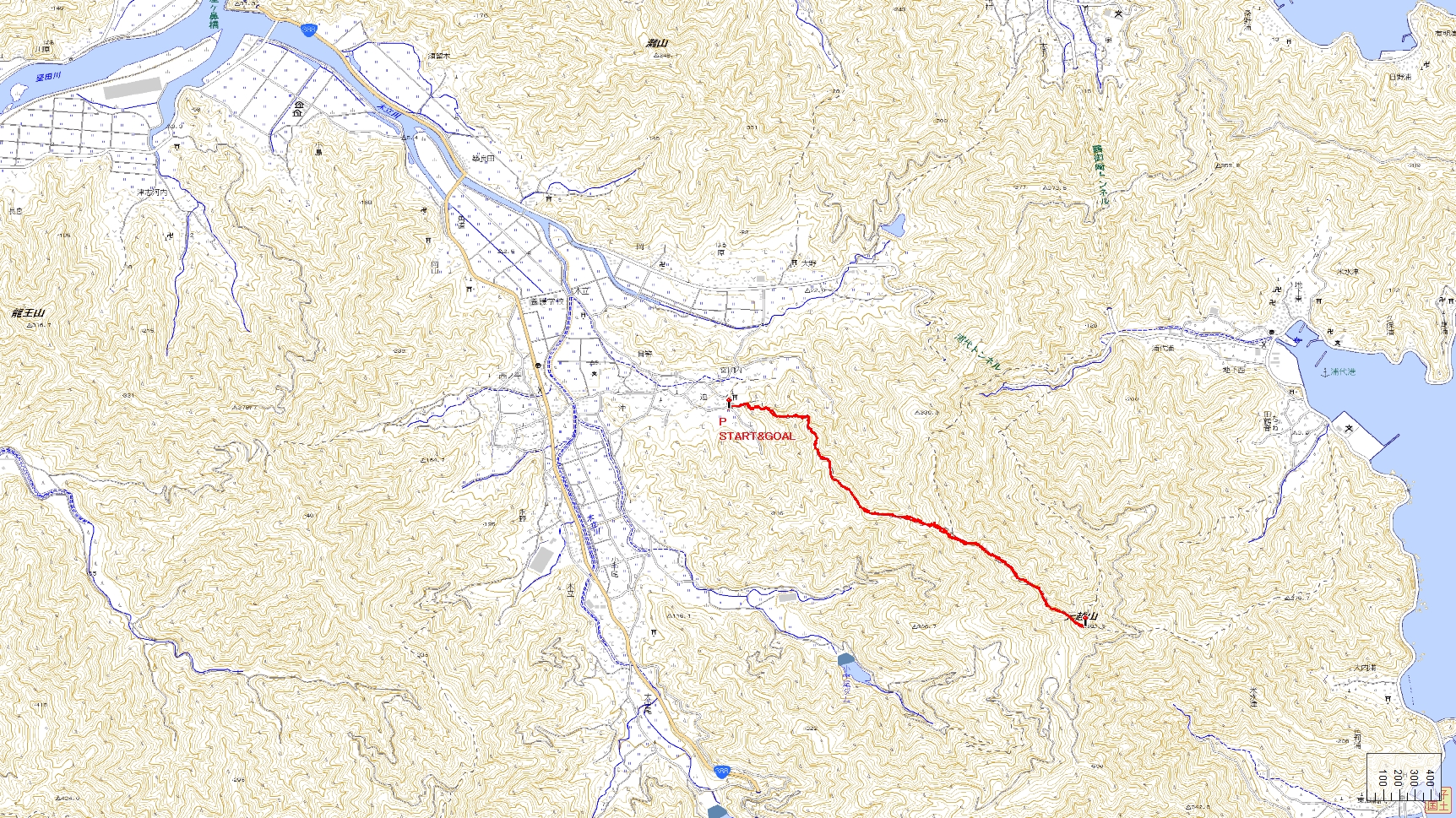 元越山登山コース(GPSによる歩行軌跡)