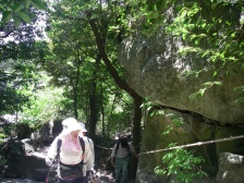 | 奥にある鳥居 | りっぱな橋を渡る | 雌岳の岩峰が見えてきた |