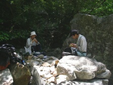 | 沢で昼食 | 水の音が爽やかである | 滝への分岐 |