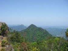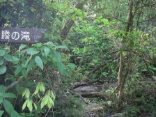 | 前ページから 県民の森の分岐から少し下り、沢を横断します。沢を渡ったところに「第3の沢 山頂まで後1250m」と書かれた標識がありました。杉林の緩やかな上り道から自然林のきつい上りとなり鞍部に出てさらに左手をひと上りすると山頂です。山頂の展望は素晴らしく雌岳や大崩山、桑原山や市房山などを望めます。下山は山頂の南側より岩壁沿いに下ります。多少危険なところや迷いやすいところがありますので初心者の方は往路を戻るほうが良いと思います。岩壁の下をテープの印を見て進みます。ところどころ数字が書いた少年自然の家の標識や○○自動車山の会の標識があります。道はかなり急です。沢に出て横断すると往路で歩いた登山道、上の駐車場からの合流地点に出ます。後は往路を戻ります。 <参考コースタイム> 駐車場−(30分)−滝見橋−(10分)−滝分岐(30分)−山ノ神峠−(45分)-行縢山山頂−(80分)−上の駐車場分岐−(20分)−駐車場 ※休憩時間は含んでいません。あくまでも参考時間です。全行程で約5時間でした。 <下山後> 明日は大崩山なので駐車場から市内に戻らず、鹿狩瀬町方面へ山道(舗装道)を走ることに。約1時間で祝川温泉美人の湯に着いた。温泉の駐車場は夜間のみテントを張らせてくれる。もちろん入浴客が優先である。駐車上には宿泊者のためにか炊事場があった。テントを張り、入浴を済ませると早速MORIさんは焼肉の準備。私はビールを飲みながらつまみを準備。小宴会が始まり、楽しい晩を過ごした。 <残念なこと> 翌日私たちが下山して駐車場に戻るとテントを張ったまま出かけた人たちが多く、「撤収してください」と張り紙が張られていた。マナーが悪いと、いつかはテント禁止になるかもしれない。同じ登山者として残念だ。 翌日は、大崩山・・・・・大崩山の日記 |