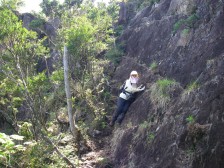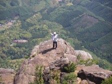 | 山頂のここから下山 | ここに降り立つ | 山頂を見上げると断崖絶壁 |