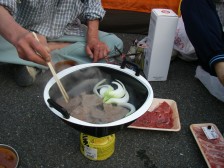 | 駐車場をお借りする | 炊事場もある | 焼肉だ! |