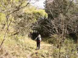 椎茸の榾木を右手に緩やかな上りを行きます。やがて右に曲がると左手に鎖場があり急坂を一息で尾根に出ます。