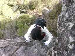 ほとんど垂直ですが手がかりは良く、さほど苦労せず登りました。