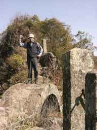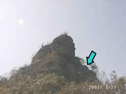尾根からすぐに右手に岩が立ちはだかり見上げると誰かが絶壁を降りようとしていました。思わず「これを登るのかぁー」と家内と顔を見合わせてしまいました。