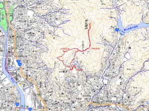 | 今回のコース(クリックで拡大) | 立山公園に車を停めさせてもらった(12:06) | |