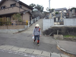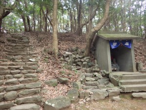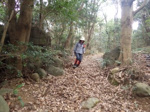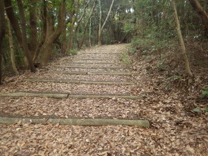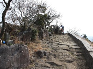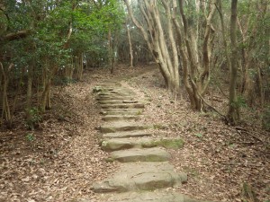 | 石段を上がる | 少し登山道らしくなるが | 石畳の道になる |