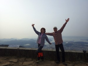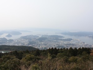 2015年2月15日 天気 曇り ■出発時間:午前8時00分(平戸千里ケ浜) ■メンバー:家内と2人 昨日は、平戸の山を歩いて少し贅沢な夜を過ごした。(前日へ) 天気予報の通り、今朝は雲が多い。一昨日、天気予報を見て急遽予定を変更したので今日は街中の山で歩行距離も短い。まずは、佐世保市の烏帽子岳、そして長崎市内の金比羅山、どちらも山と渓谷社編の旧版の「九州百名山」である。 佐世保市にある烏帽子岳は九合目の「風と星の広場」まで車で行ける。それでは面白みに欠けると思いガイドブックを見るが麓からの道は、ほぼ車道歩きとなるようなのでやはり九合目スタートとした。 金比羅山は長崎市内なので民家の中を抜けて行く。登山口は地図をみないとはっときりとした道標がない。私有地を通って行くので仕方あるまい。 平戸から佐世保市内に入り、烏帽子岳九合目広場に着く。何とも広い公園である。駐車場に車を停めてのんびりとスタートする。登山というより散歩である ここはバスの終点のようでしばらくバスが停車していた。階段状の道を登りきると山頂である。 佐世保市内が眼下に広がり展望は抜群だが、残念ながら今日は霞んでいて遠望はよくない。 山頂でしばらく写真を撮って遊び駐車場に戻る。公園内に私たち以外に1台の車と一人の中年男性のみでせっかくの広い公園なのになぜかもったいない気がする。 さて ここから長崎市内は結構距離がある。本来ならば隣接する山を楽しむべきであろうが、旧版九州百名山の金比羅山をどうしても行っておきたい。 長崎市内に入ると仕事や観光で何度も訪れた記憶が蘇る。電車通りから海と反対側に曲がるとすぐに坂道となりその坂道は複雑に枝分かれしてゆく。ここではバイクや軽自動車が活躍する。 金比羅山も当然住宅街の中の坂道をくねくねと行き、何とかスタート地点の立山公園に到着する。公園からは地図と睨めっこで道標無き民家の間の私道を抜けてゆく。振り返ると長崎の市街が見渡せる。鳥居があるとようやくルートが明確になる。金比羅神社は由緒ある神社と聞いていたが狛犬を見てもなんとなくそれを感じる。 神社の中を通り樹林を抜ける広場に出る。ここがハタ揚げ広場とのこと。そして草原の坂に大きな岩がポッツとあるが、これを地元の人はドンク岩と言いカエルのことらしい。私が見る限りカエルには見えなかったが・・・・。 ここからは隣接する山で烽火山(ほうかざん)が見える。ここから山頂までは石段が続く。途中祠もあるので間違いなく上宮があるのだとわかる。 石段を息を切らせながら上って行くと再び鳥居がある。山頂である。西側と東側の展望が霞んではいるが素晴らしい。奥に上宮があってその手前に三角点がある。 二組の先客があって後から男性3人のグループが別のルート(おそらく宝生寺側)から登ってきた。やはり人気はあるようである。 下山は神社まで戻り、そこから多目的広場へと進む。階段は木のチップが敷き詰められていて何とも足に心地よい。そう言えば福岡の若杉山でも同じように登山道に木のチップが敷き詰められていた。 多目的広場でも展望を楽しみ立山方面へと降ると住宅街に出た。道標はないので地図を見ながら歩く。そして雨にも遭わず無事立山公園に到着した。 この二日間、天候にも恵まれ、多少観光気分であったが楽しい山行であった。今回も山に自然に地元の人に感謝である。 ■コースタイム 烏帽子岳:P-(15分)-山頂-(10分-P 金比羅山:立山公園-(20分)-金比羅神社-(25分)-山頂-(30分)-多目的広場-(20分)-立山公園※休憩時間は含めず。 |