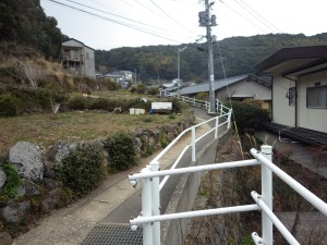 | 分岐点は左に(13:43) | 民家のある通りに出る | バリケードがある(13:46) |