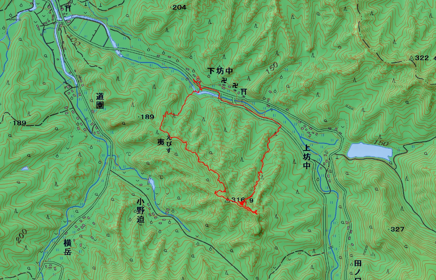 中山仙境登山コース(GPSによる歩行軌跡)