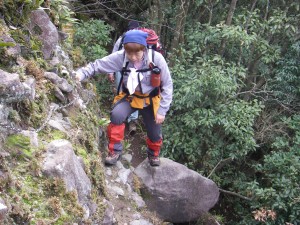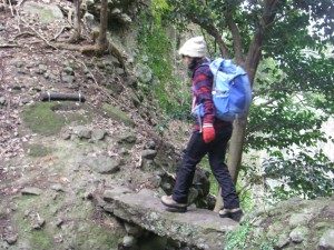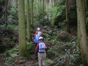 | 杉林の中 | 隠洞穴 | 岩壁を巻く |