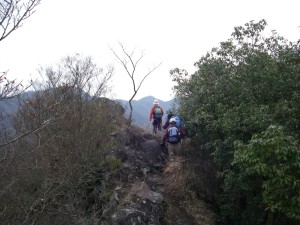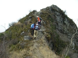 | 馬ノ背を歩く | 要所に鎖がある | ちょっと寄り道 遠くにMORIさんが |