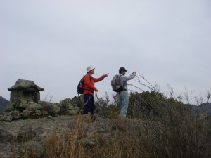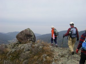2011年2月20日 天気 曇り 国東の山々で人気のある中山仙境は、なぜか未だ歩いていなかったが、MORIさんからの提案で今回歩くことになった。参加者は、MORIさん夫妻とあこちゃん夫妻と私たち夫婦の6名で、いつもの豊前お越しかけに集合し、午前9時に出発した。今回のルートは、この地図の河川プールからのコースを逆周りした。思ったほど危険な場所はなく(これはあくまでも私の感覚)岩のヤセ尾根を楽しむことができた。帰りは少々時間があるので天然寺の無明橋を眺めて昭和の町を散策して帰路に着いた。観光がてらの充実した1日であった。 <アクセス> 国道10号線を宇佐方面へ走り、宇佐神宮を過ぎ、宇佐市岩崎の交差点から左折して国道213号線を豊後高田へと向かう。真玉町を過ぎ、香々地トンネルを抜け交差点を右折県道653号線を夷谷温泉方面へ。雲仙寺の前までくると駐車場がある。 <コースタイム> 河川プール駐車場-(7分)-登山口《下山口》-(20分)-隠洞穴-(30分)-高城山頂上-(15分)-無明橋-(30分)-展望の良い峰-(20分)-河川プール駐車場 ※休憩時間は含んでいません。全行程で2時間45分でした。 |