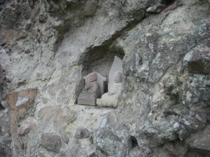 | 岩壁をくり貫いて石仏がある | これも奇岩 | ここは真っ直ぐ |