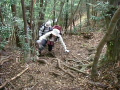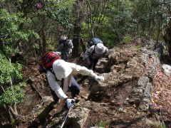 | 稜線に出たところ | アケボノツツジが見事である | 岩場をよじ登る |