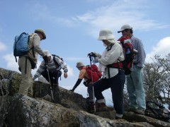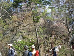 | 全員で | かなり大きなアケボノツツジ | 岩場を降る |